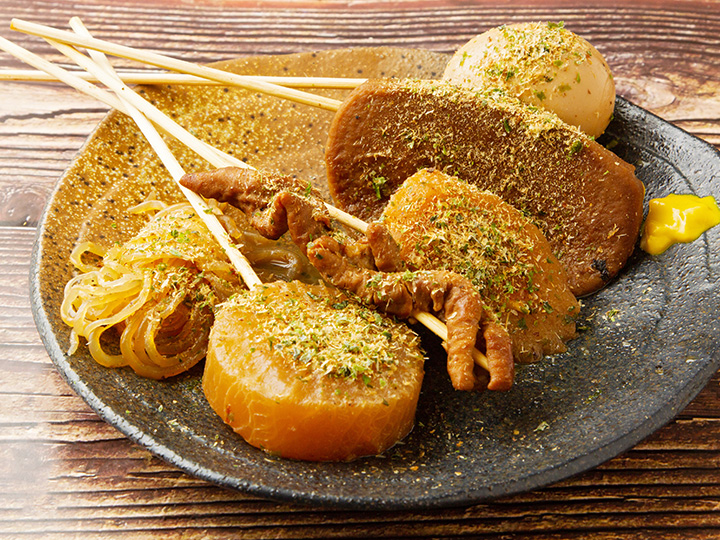 おいしくお酒を飲むためのおつまみも、静岡市にはたくさんあります。静岡おでんや、新鮮なお刺身をお供に晩酌する時間は至極のひとときです!静岡おでんは、牛すじでだしをとった真っ黒のスープに、黒はんぺんなどの具が入っています。お好みで、イワシなどの魚の削り節「だし粉」と「青のり」をかけて食べるのが静岡流です。