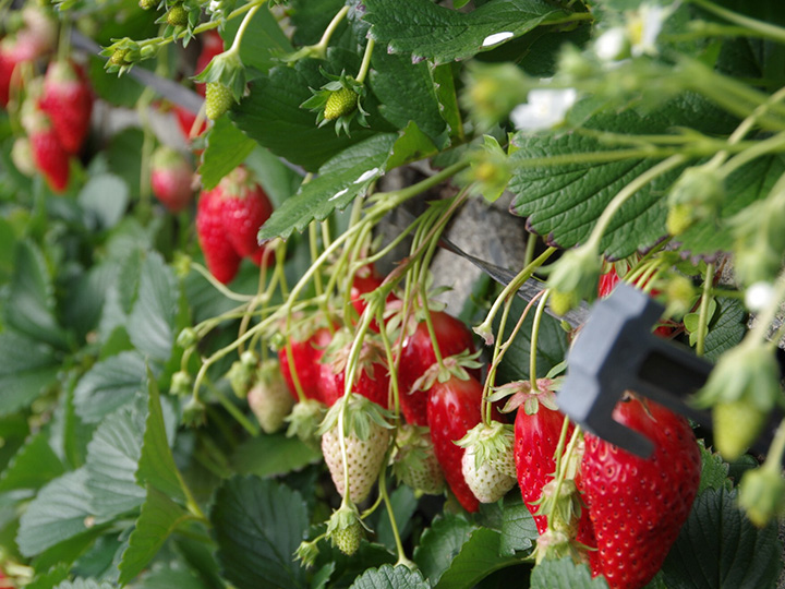 イチゴは、「石垣いちご」として有名な久能海岸沿いの地域などで生産されています。いちご狩りのシーズンには、多くの人が久能海岸を訪れ、甘いイチゴを楽しんでいます。いちご狩りでは完熟のいちごを味わうことができることが最大の魅力です。また、久能海岸以外でもいちご農家さん直営の販売所やカフェが各地でオープンしており、新鮮ないちごを頻繁に手に入れることができます。