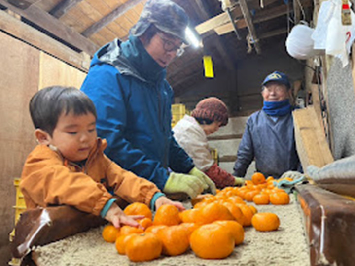 ミカンは、日当たりの良い南向きの斜面で生産されており、秋になると実がオレンジに色づき始めます。品種は定番の「青島ミカン」(糖度が高く甘い)のほか、「はるみ」(ジューシーな味わい)などが生産されています。11月から春にかけて、さまざまな品種のミカンがスーパーや直売所などでならびます。