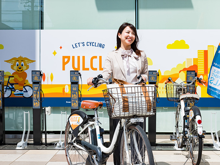 電動自転車のシェアサイクル、「PULCLE(パルクル)」を利用している人もたくさん。ちょっとした移動やたまのサイクリングなど、サイクルポートもたくさんあるからさまざまな場面で気軽に使えます。