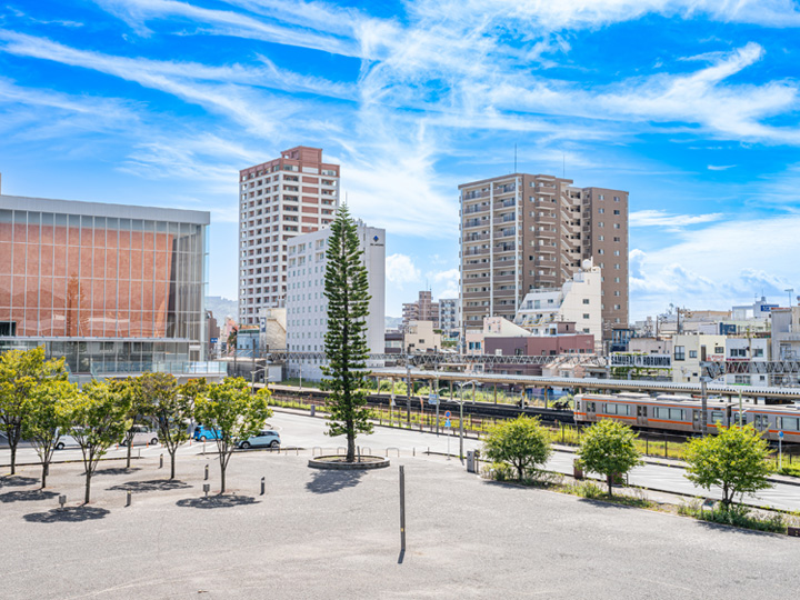清水駅を降りるとほのかに海の香りを感じる、静岡の海の玄関口である清水港がほど近い地域です。市内唯一の全天候型アーケード内での清水七夕まつりで有名な清水駅前銀座商店街やこども達が仕事体験できるこどもクリエイティブタウンま・あ・るがあり、マグロなどを楽しめる河岸の市、多彩な公演が行われる清水文化会館マリナート、清水さくら病院などが集まっています。国鉄清水港線の廃線跡地の遊歩道を歩くと、ちびまる子ちゃんランドが入るエスパルスドリームプラザや大型クルーズ客船が接岸する日の出地区へ。朝夕の散歩にもおすすめです。