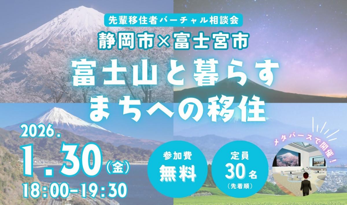 静岡市トップページ > くらし・手続き > 静岡市の移住支援情報 > お知らせ > 2025年 > 【静岡市×富士宮市】先輩移住者バーチャル相談会