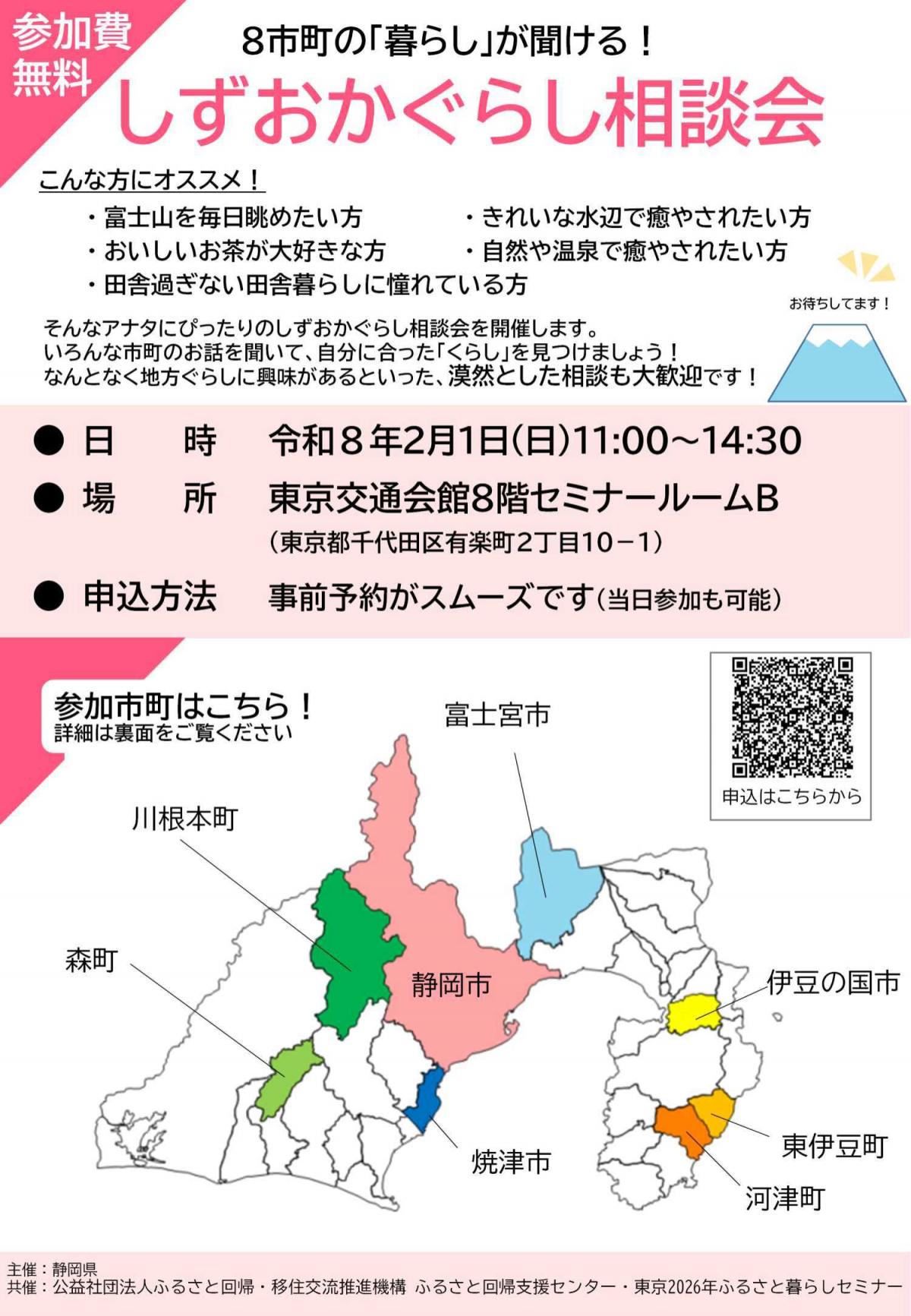 【2月1日】県内8市町の暮らしが聞ける!「しずおかぐらし相談会」