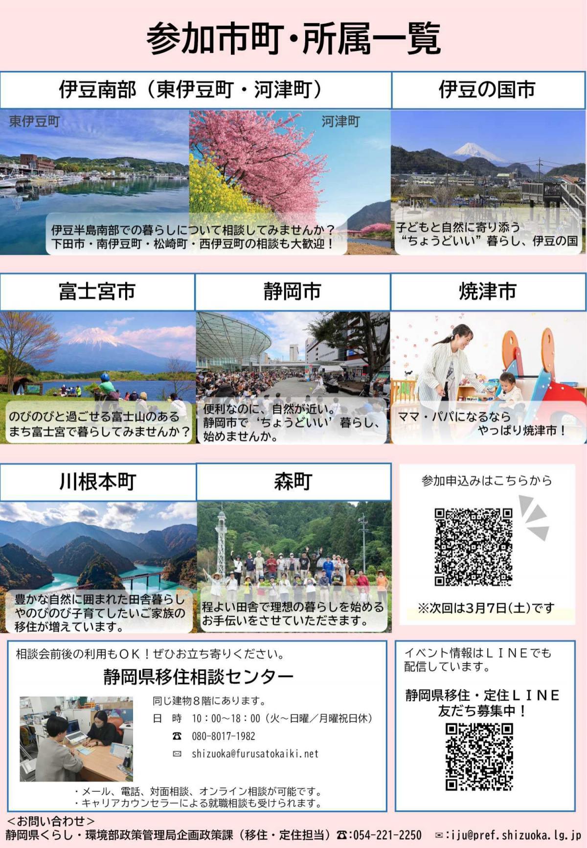 静岡市トップページ > くらし・手続き > 静岡市の移住支援情報 > お知らせ > 2025年 > 【2月1日】県内8市町の暮らしが聞ける!「しずおかぐらし相談会」