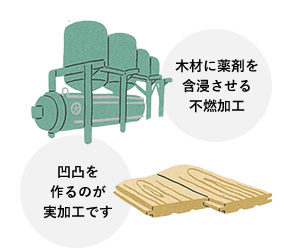 乾燥機で乾燥させたり、実加工や不燃加工、液体ガラス含浸加工など様々な加工があります。
