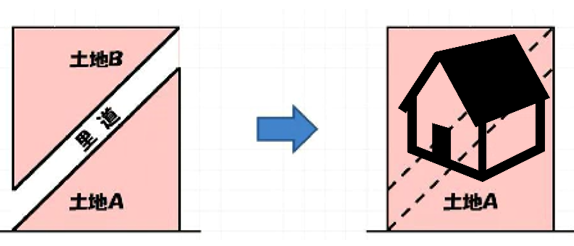 - 事業者が、現在の道(法定外公共物)について、代わりの道を整備・寄附することで従前の道の土地について用途廃止の手続きを経て購入することで、建築基準法の規制をクリアすることができた。