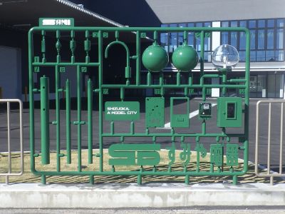 本市はプラモニュメントの設置をはじめとするプラモデルデザイン(組立前のプラモデルを連想させるデザイン)の活用に対して補助金を交付しています。