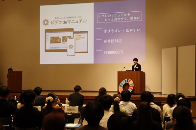 「第23回しずおかビジネスプランコンテスト静岡鉄道賞」も受賞した「ビデオdeマニュアル」について発表。web上で動画マニュアルを作成し、中小企業の業務効率を図る革新的な事業を展開している。