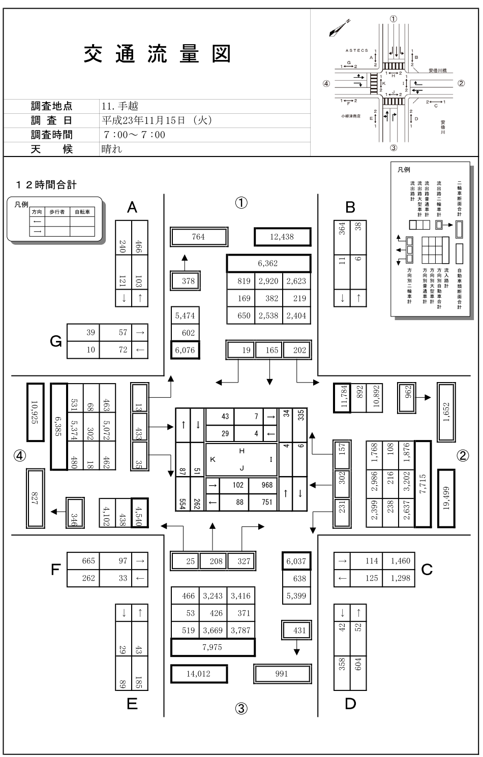 静岡市トップページ > くらし・手続き > 道路・交通・自転車 > 交通・自転車 > 静岡市主要交差点交通量調査 > 交通量調査全地点図 > 交通量調査全地点図(駿河区) > 65.安倍川橋西 > 65.安倍川橋西:平成23年度(12h)