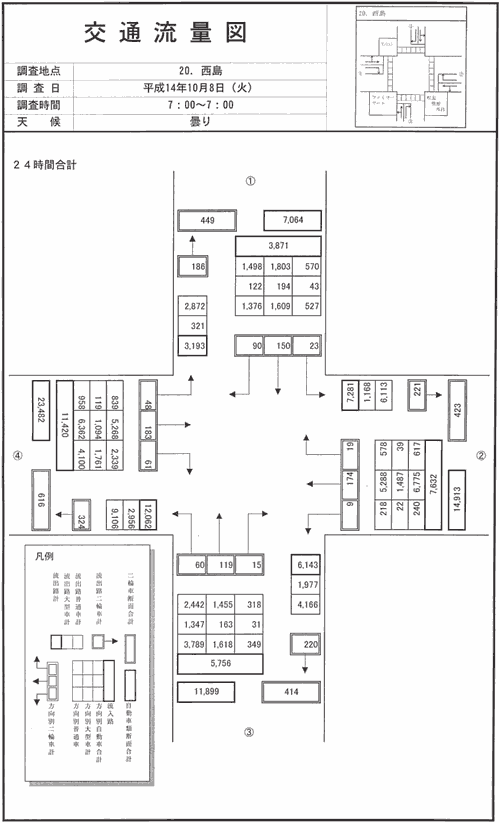 静岡市トップページ > くらし・手続き > 道路・交通・自転車 > 交通・自転車 > 静岡市主要交差点交通量調査 > 交通量調査全地点図 > 交通量調査全地点図(駿河区) > 69.西島 > 69.西島:平成14年度(24h)