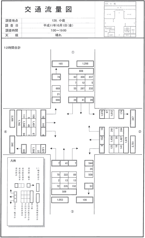 静岡市トップページ > くらし・手続き > 道路・交通・自転車 > 交通・自転車 > 静岡市主要交差点交通量調査 > 交通量調査全地点図 > 交通量調査全地点図(駿河区) > 96.小鹿 > 96.小鹿:平成11年度(12h)