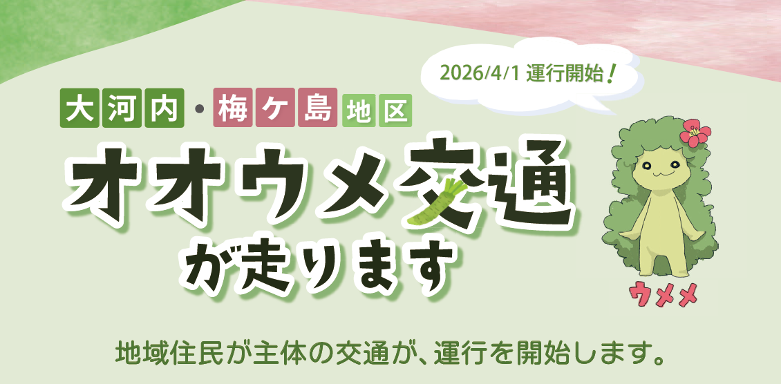 オオウメ交通は葵区大河内・梅ケ島の両地区を走るコミュニティバスです。2026年4月1日から運行開始予定です。