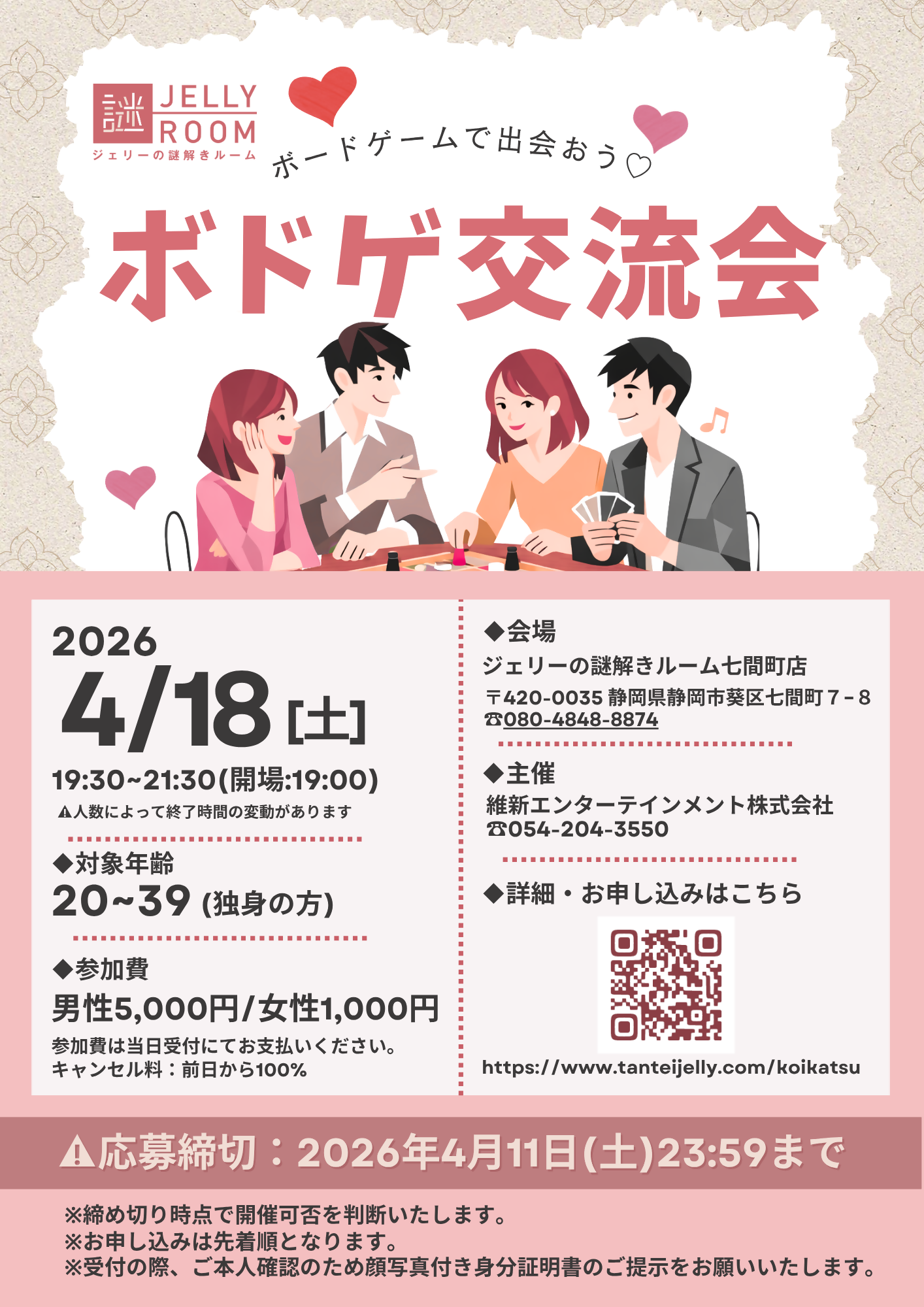 【募集終了】静岡市主催「ここから始まる出会い♡ボードゲーム交流会 in 静岡」