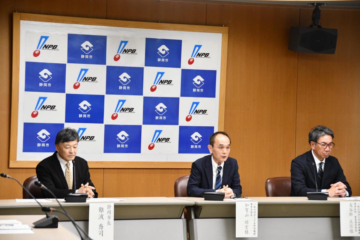 2026年プロ野球ファーム日本選手権の静岡市開催決定に伴い、3月10日(火曜日)に静岡市役所にて、一般社団法人日本野球機構と静岡市とで共同記者会見を実施しました。