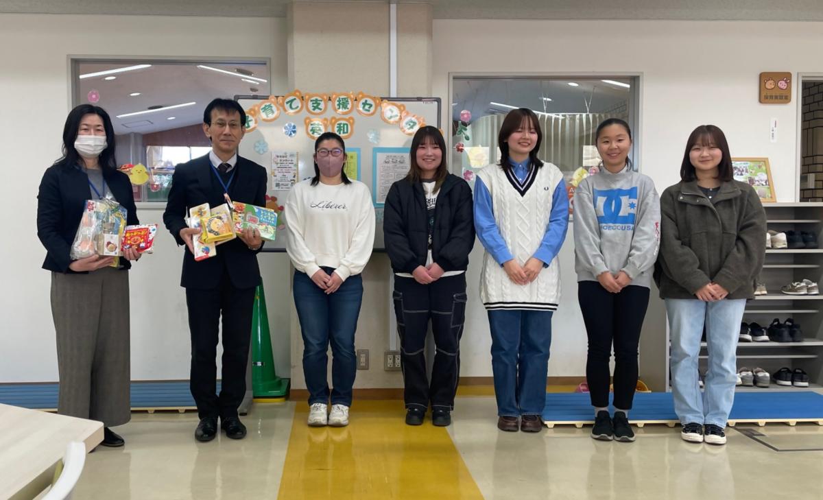 静岡英和学院大学の学生グループ「学生と学ぶシリーズ実行委員会」から、2025年11月に開催された学園祭「楓祭」の収益をもとに、絵本5冊とおもちゃ6点の寄附をいただきました。