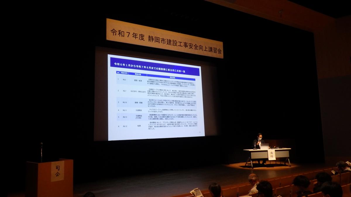 静岡市(建設局・上下水道局下水道部)では、建設工事の安全に対する意識向上・工事事故防止を目的として建設業に携わる方々に向けて、建設工事安全向上講習会を毎年開催しています。