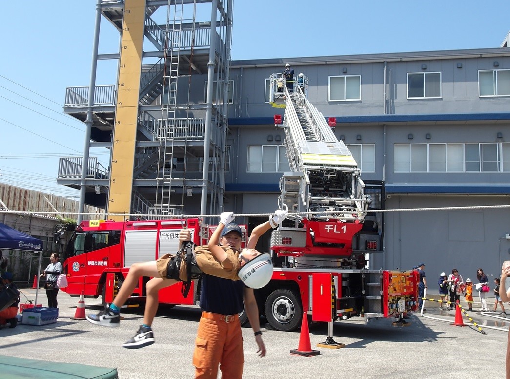 - 消防隊体験(防火衣の着装、消防車両見学、放水体験等)、質問コーナーなど