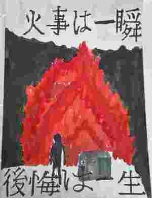 静岡市消防局では、児童の防火意識の高揚を図るとともに、地域住民の皆様に火災予防を呼びかけることを目的として、静岡市幼少年女性防火委員会のクラブ員に防火ポスターの募集を行い、少年の部から48点、幼年の部から100点応募がありました。