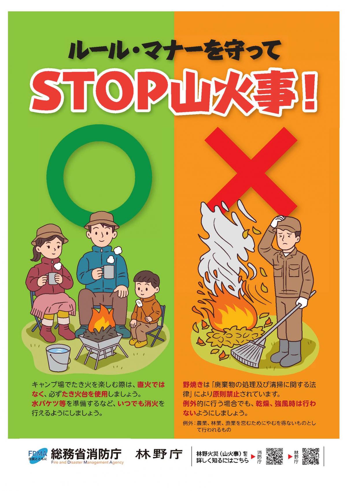 - 屋外において火遊び又はたき火をしないこと。