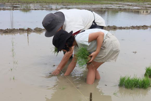 登呂の田んぼで田植え体験