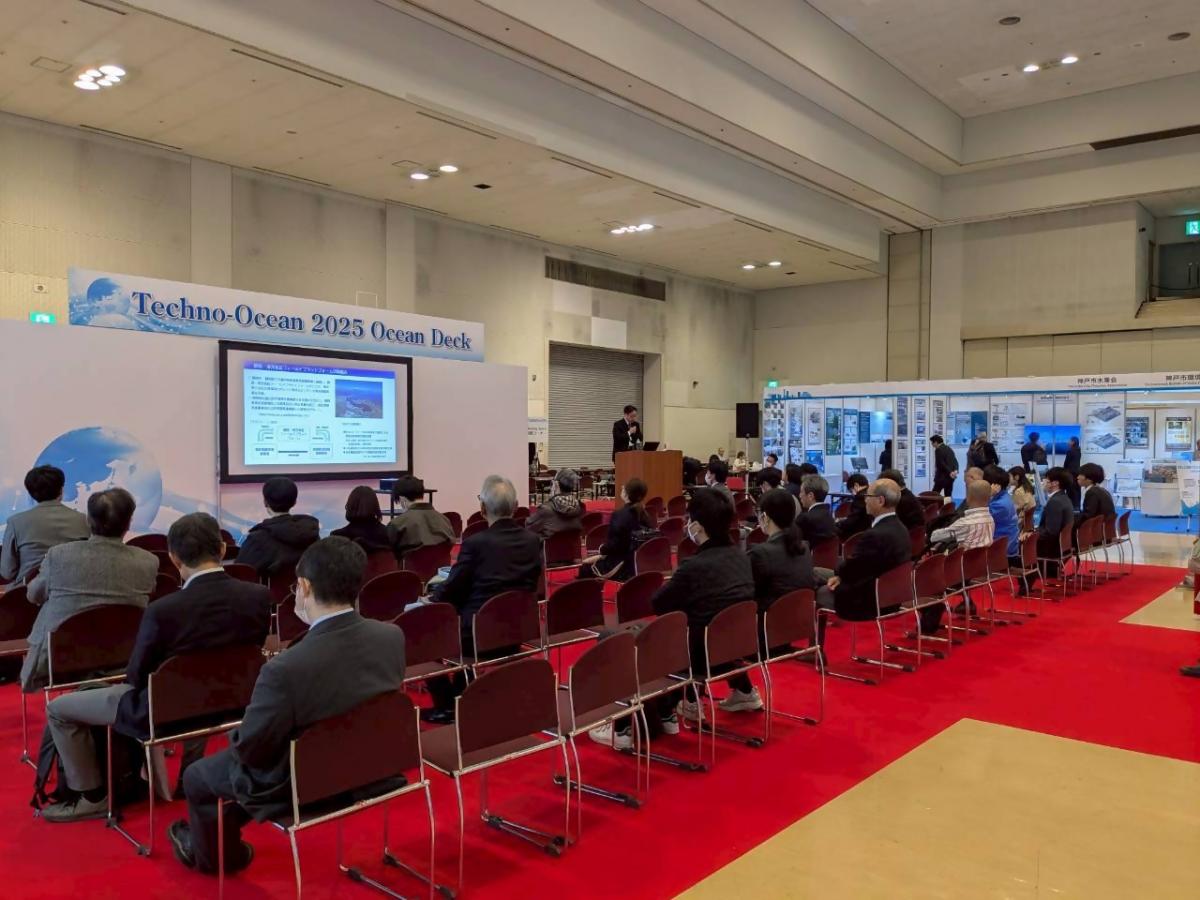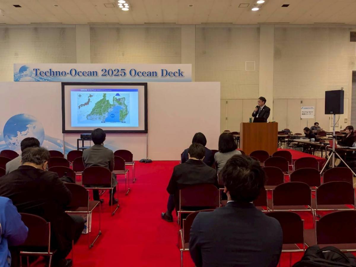 神戸国際展示場で開催されたTechno-Ocean2025展示会に静岡市/一般財団法人マリンオープンイノベーション機構の合同ブースを出展し、駿河湾・海洋DXプロジェクトの情報発信を行いました。また、会場内の特設会場にて、橋本事業責任者によるプレゼンテーションを実施しました。