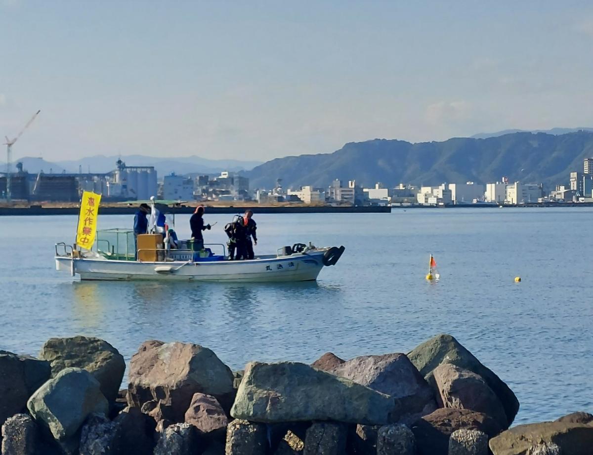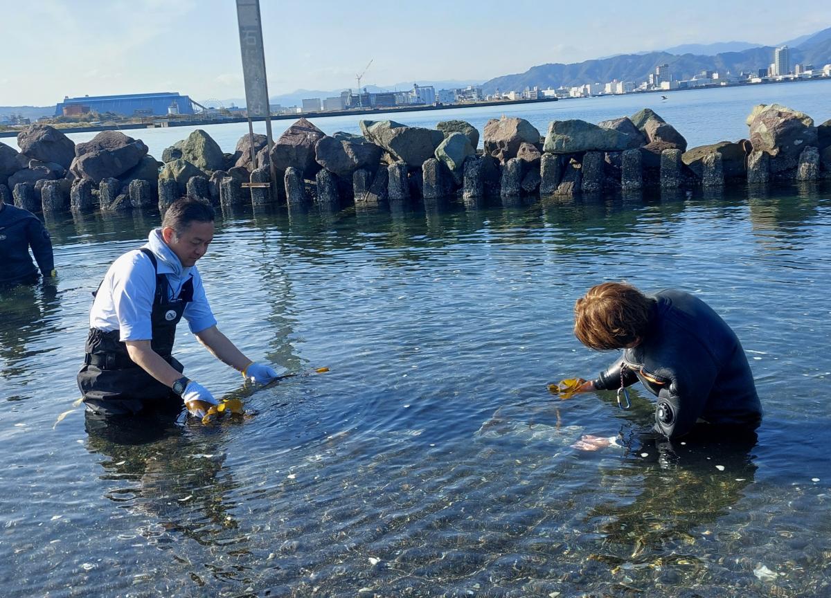 藻類養殖に向けた簡易養殖棚の制作及び養殖する藻類の設置潜水士による海中設置作業