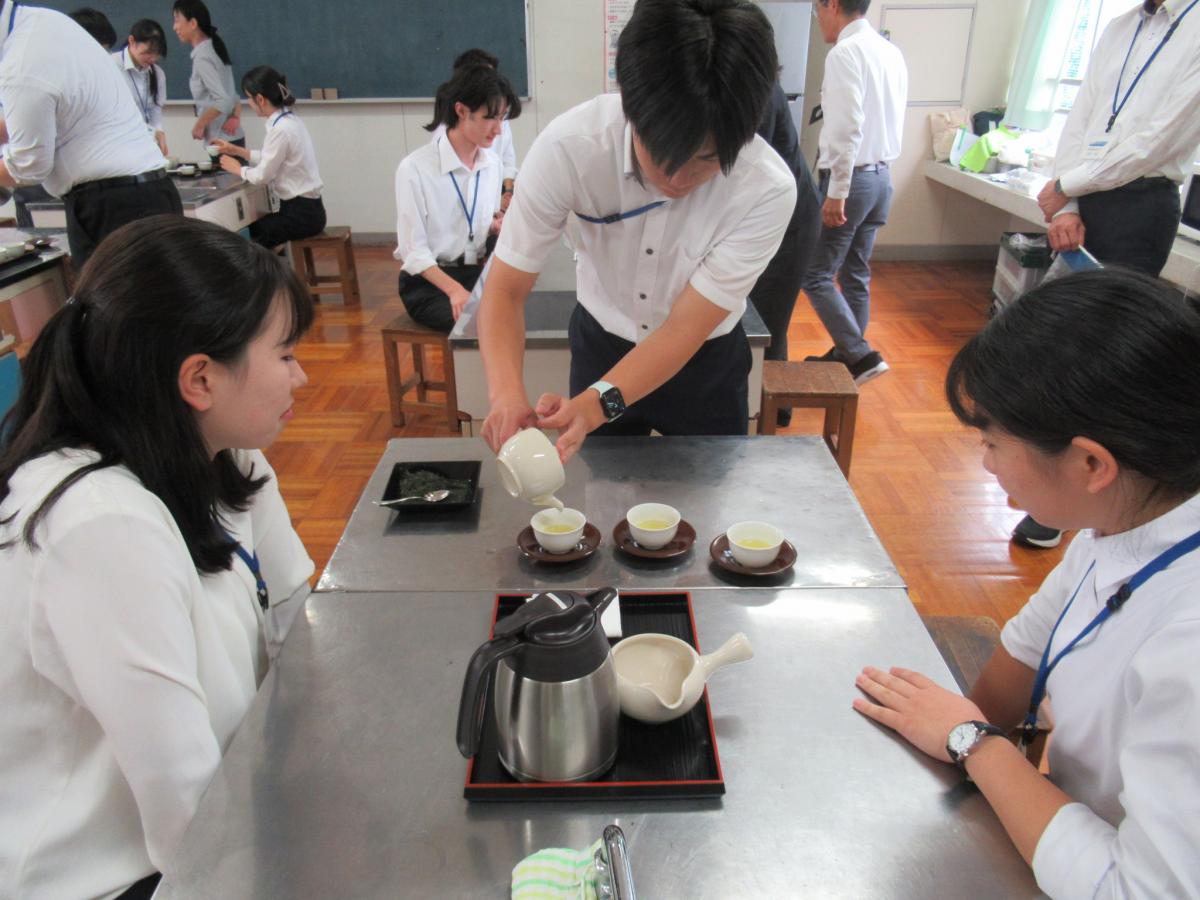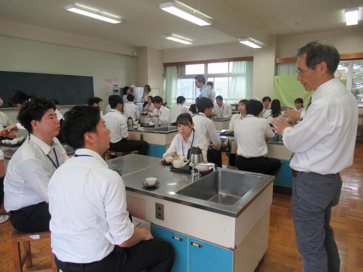 午前の「お茶の入れ方教室」では、日本茶シニア・インストラクターの中田吉彦氏から、お茶が静岡市の特産物となった歴史的背景と美味しいお茶の入れ方を学びました。「お茶の入れ方教室」は市内の小学5・6年生を対象に実施しています。塾生は、お茶を実際に入れてその「美味しさ・魅力」を実感すると共に、「入れ方教室」の実際を理解することができました。