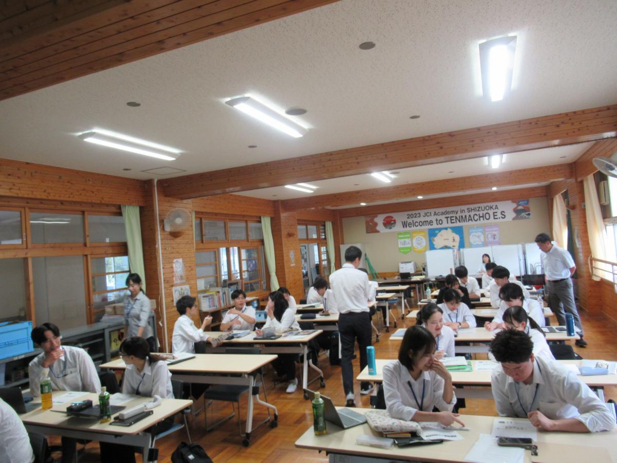 午後は、「静岡市の情報教育」をテーマに、静岡市教育センター指導主事2名からご講話いただきました。塾生は、学校現場におけるICT機器の活用事例と効果を学び、具体的な活用場面についてイメージを膨らめると共に、著作権と情報モラルについて理解を深め、適切に使用していくことの大切さを実感することができました。