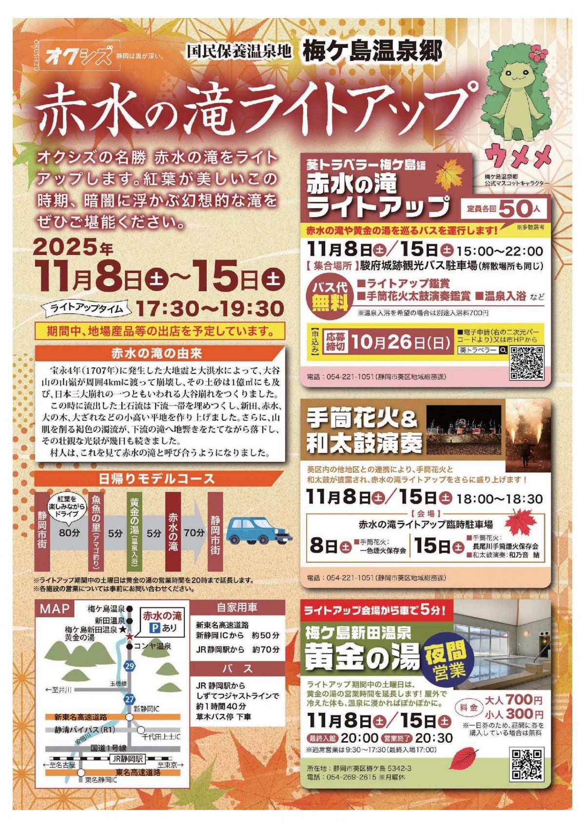 毎年恒例となったオクシズ梅ケ島地区の『赤水の滝のライトアップ』が今年も開催されます!