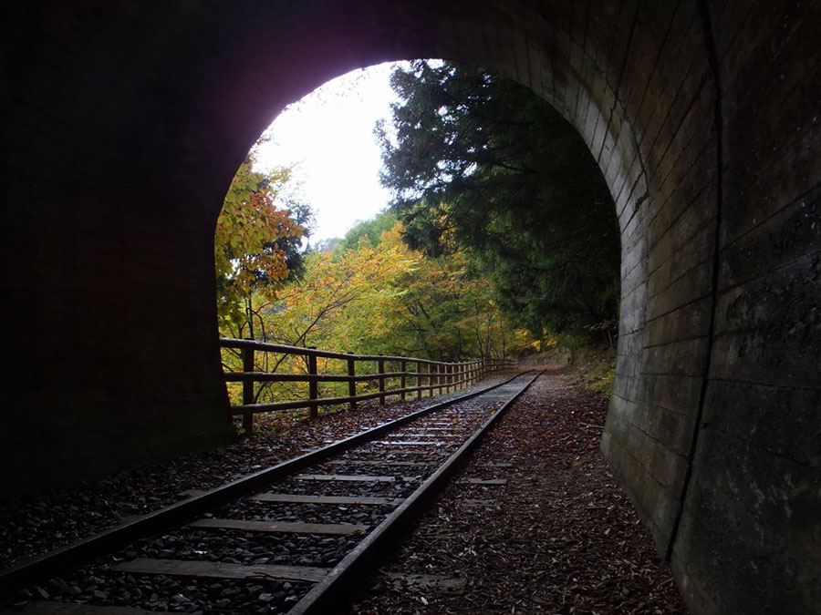 井川湖廃線小路は、井川ダム建設時に利用されていた鉄道のレールやトンネルがそのままに残る遊歩道です。