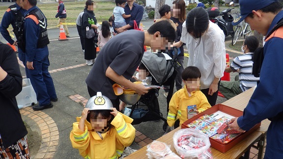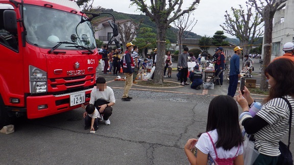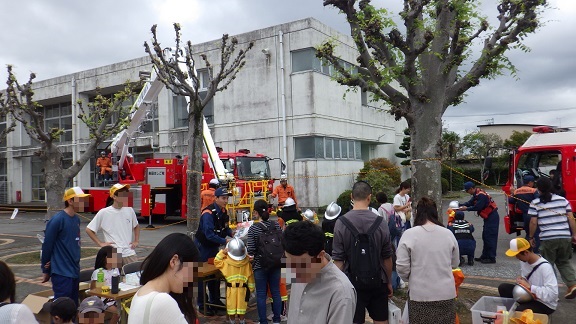 このイベントは、島田市道悦島地区の住民が、宝探しゲームやeスポーツを楽しみながら交流を深めるもので、島田消防署からは、緊急車両であるはしご車などの展示を行いました。また、防火に関心を持っていただくため、放火されないまちづくりや住宅用火災警報器の設置について広報を行いました。